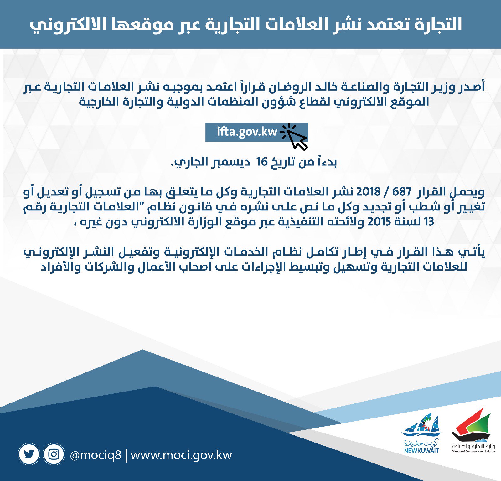 وزير التجارة يعتمد نشر العلامات التجارية عبر الموقع الالكتروني كويت نيوز