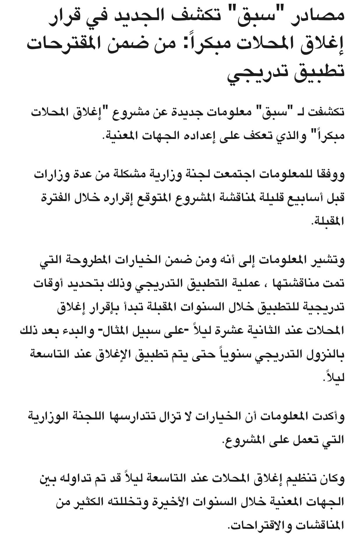 طرق الرياض On Twitter مصادر سبق تكشف الجديد في قرار إغلاق المحلات مبكرا من ضمن المقترحات تطبيق تدريجي