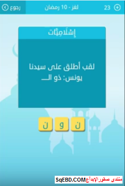 اجابة لغز لقب اطلق علي سيدنا يونس ذو المن لغز 10 رمضان من لعبة رشفة رمضانية صقور الإبدآع