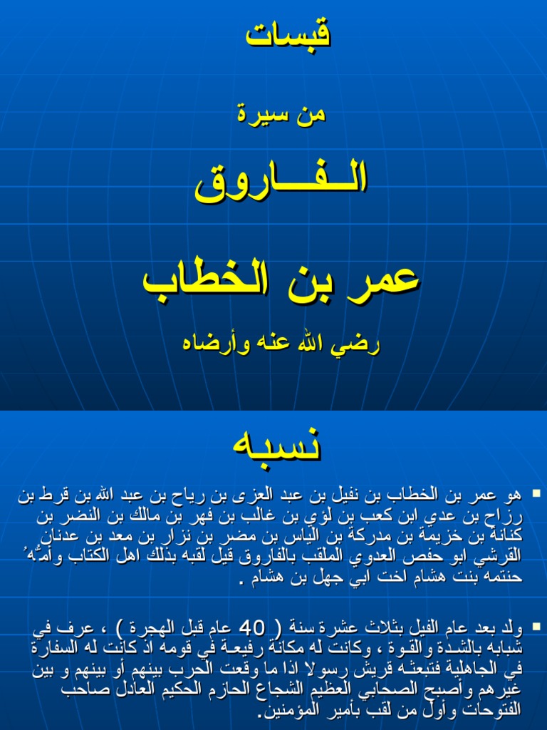 Ppt قبسات من سيرة الــفـــاروق عمر بن الخطاب رضي الله عنه وأرضاه Powerpoint Presentation Id 5013665